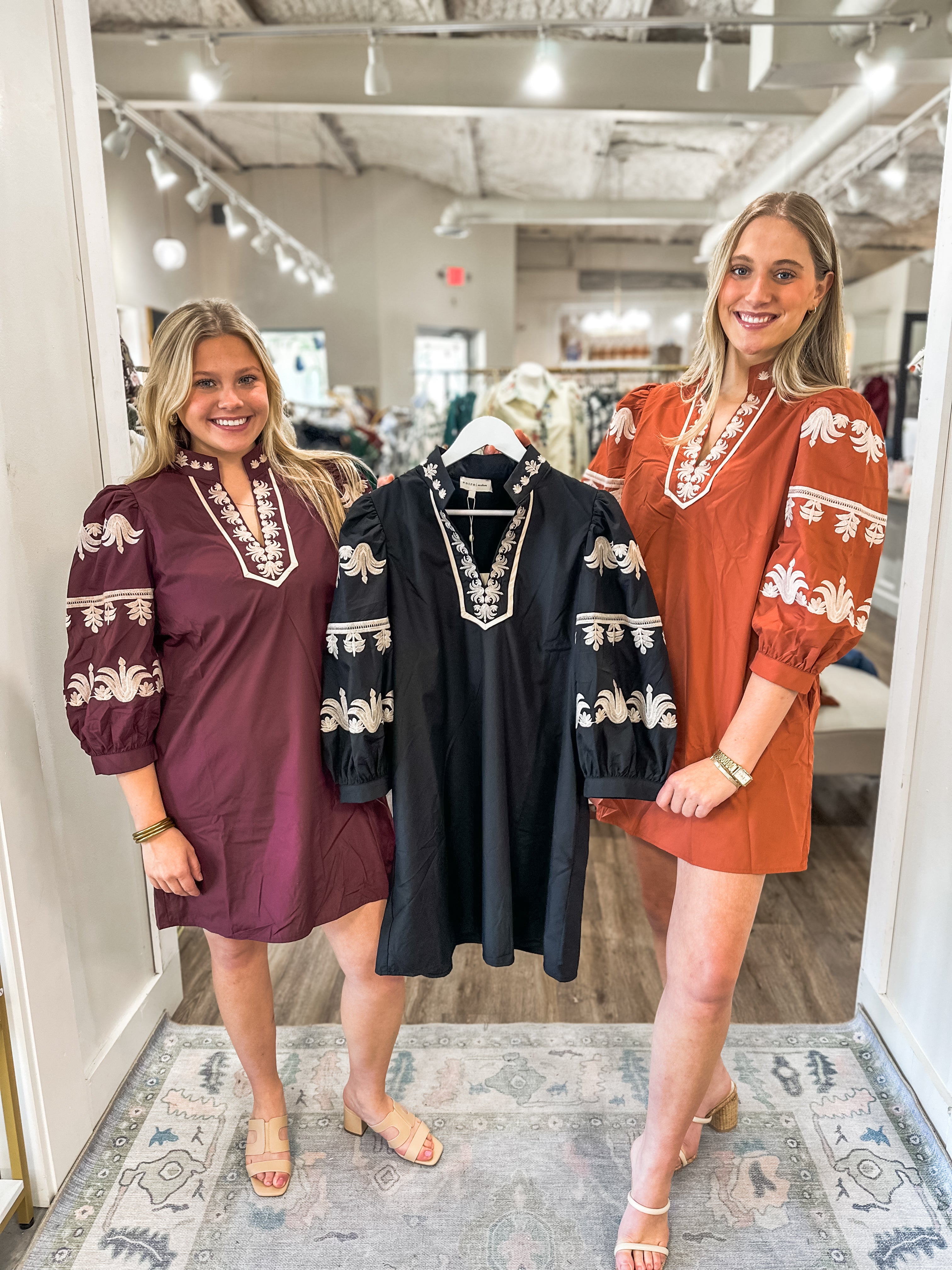 Classic with a statement twist, the Black Ever After Embroidered Mini Dress is made for fall soirées, festive nights out, or Sunday brunch with the girls. Its timeless black base and bold cream embroidery make it a versatile yet unforgettable piece.
