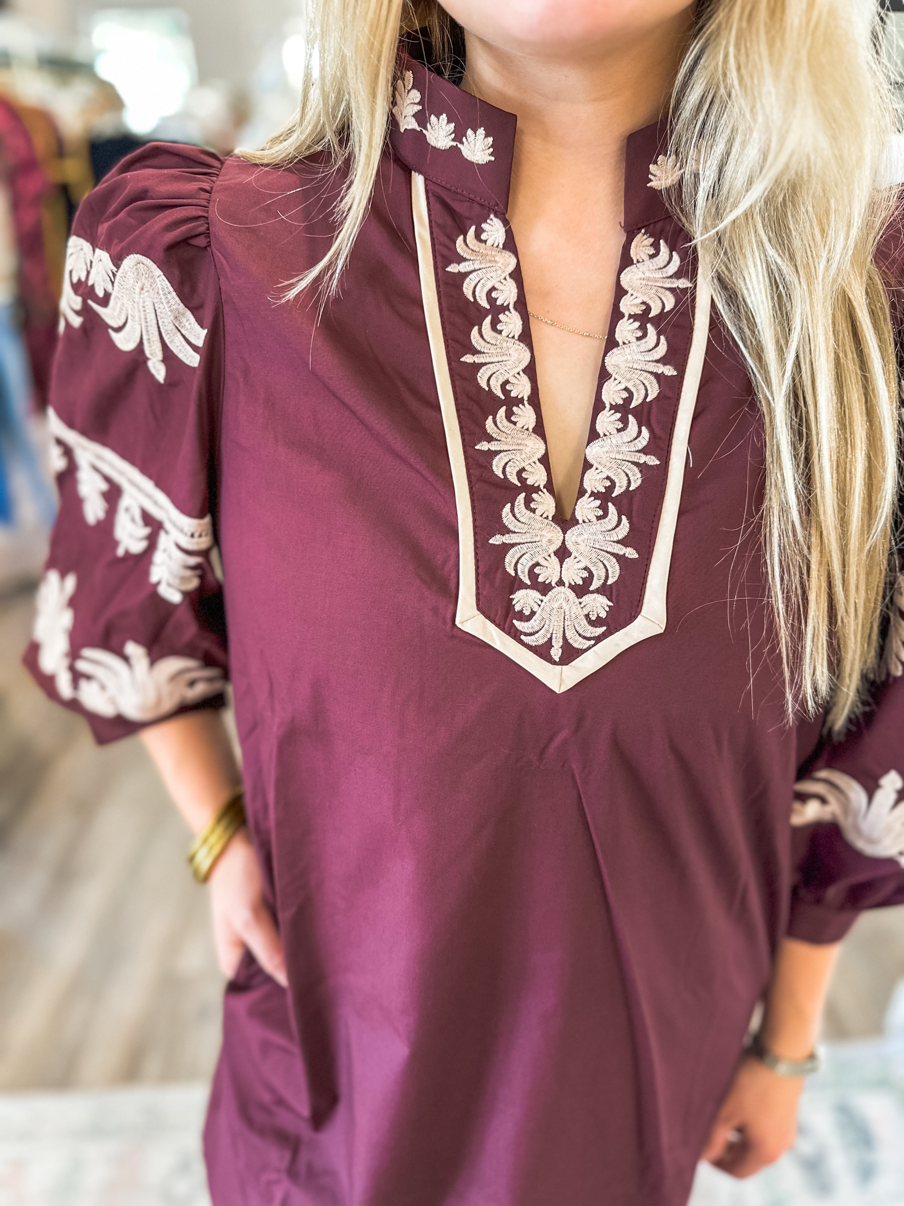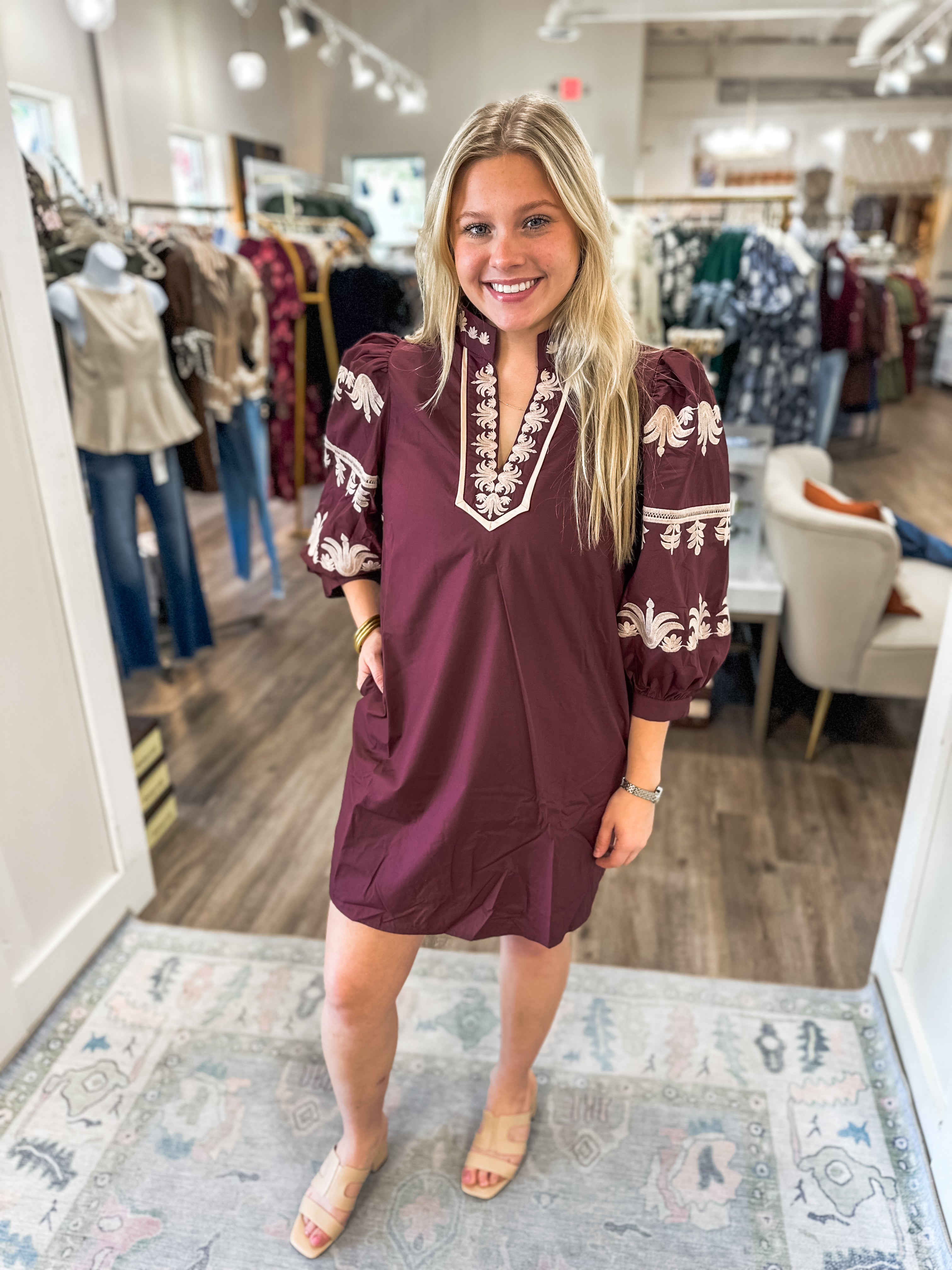 Romantic meets timeless in the Burgundy Ever After Embroidered Mini Dress. Perfect for fall weddings, special dinners, or holiday gatherings, this dress brings a rich pop of color with intricate details.