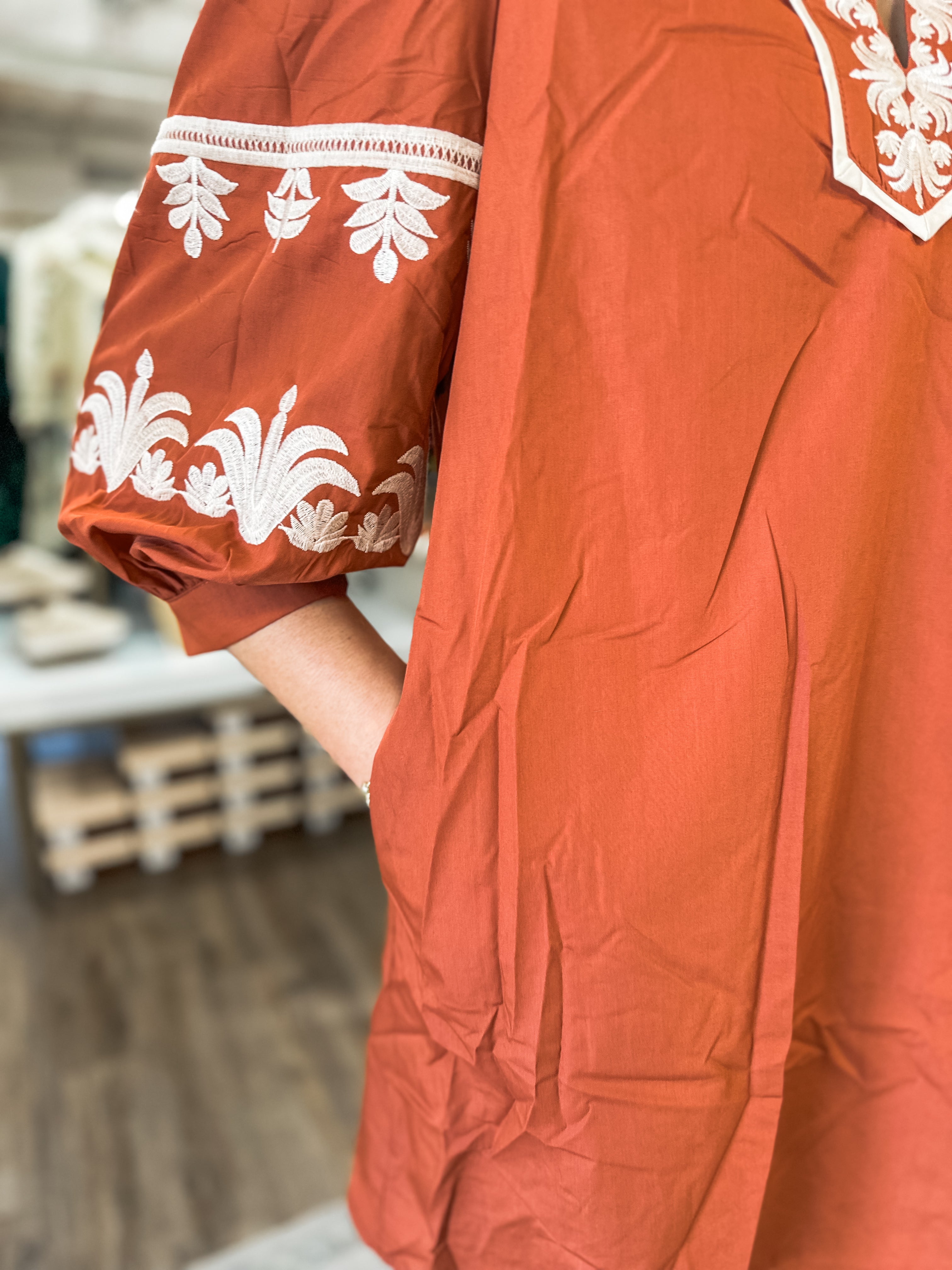Make a statement this season in the Chestnut Ever After Embroidered Mini Dress. Whether it’s fall photos, festive gatherings, or a casual dinner, this one brings bold charm with effortless comfort.