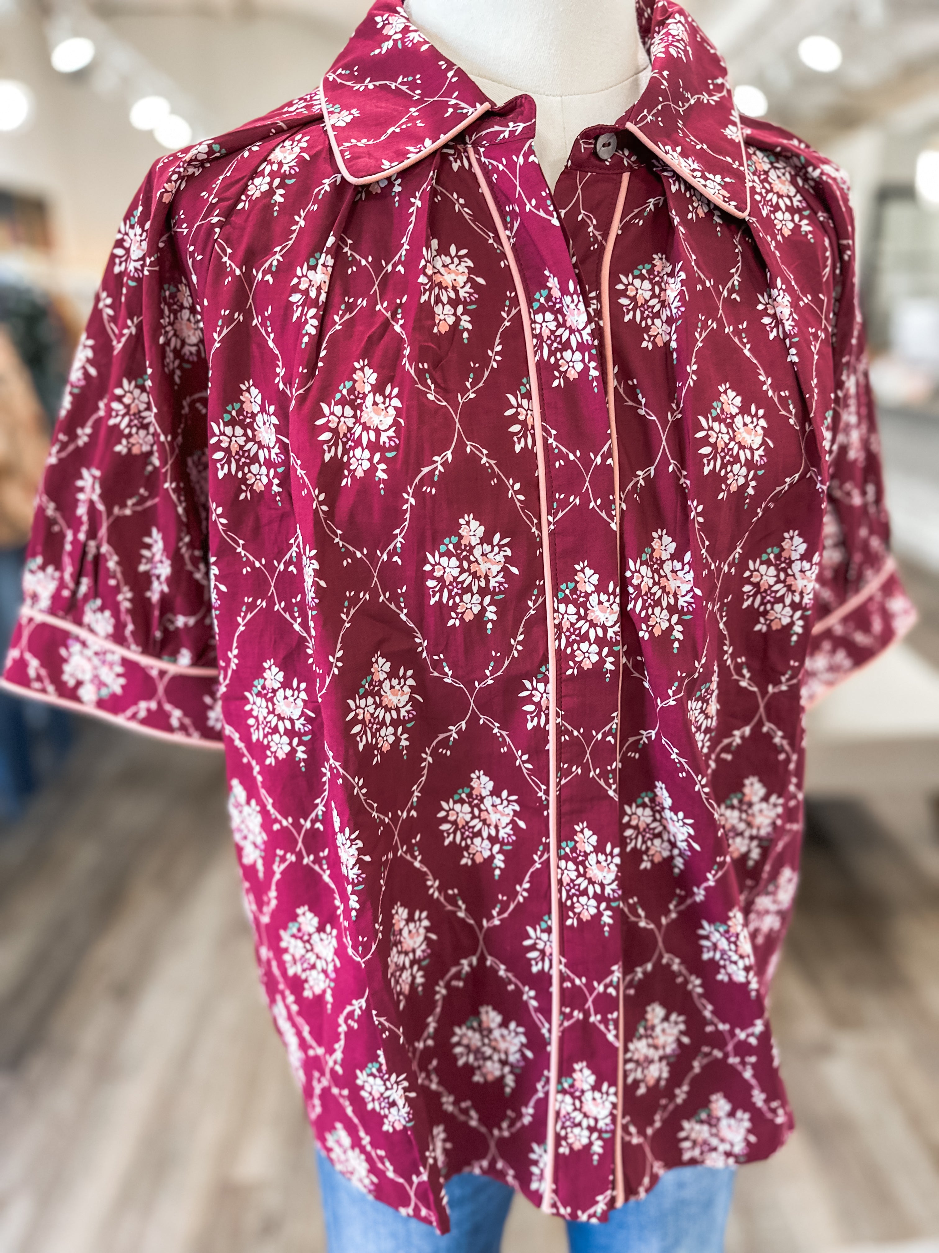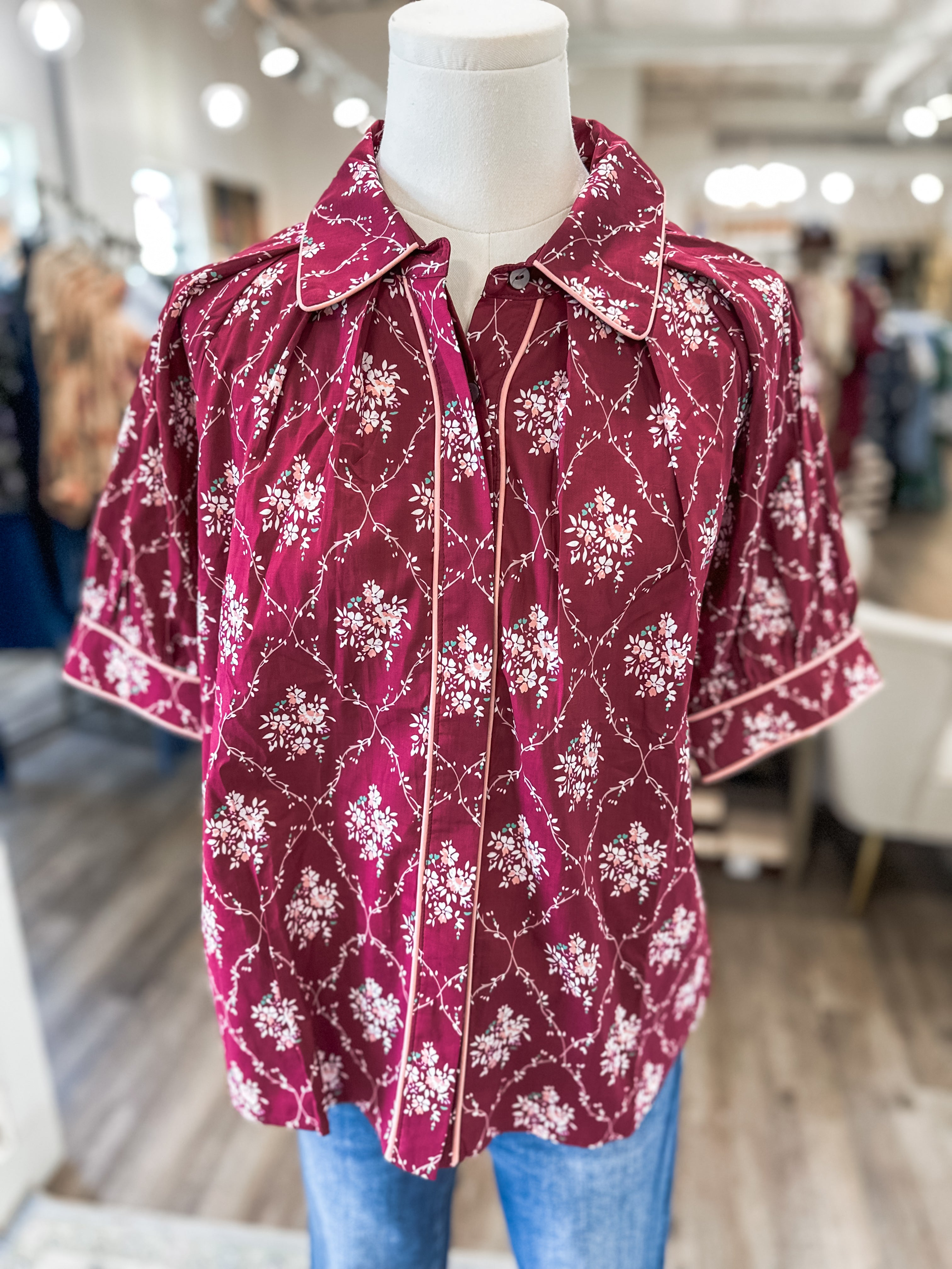 Step into charm and elegance with this mulberry-hued short sleeve top — perfect for workdays, brunch, or pairing with denim for an effortlessly chic look.