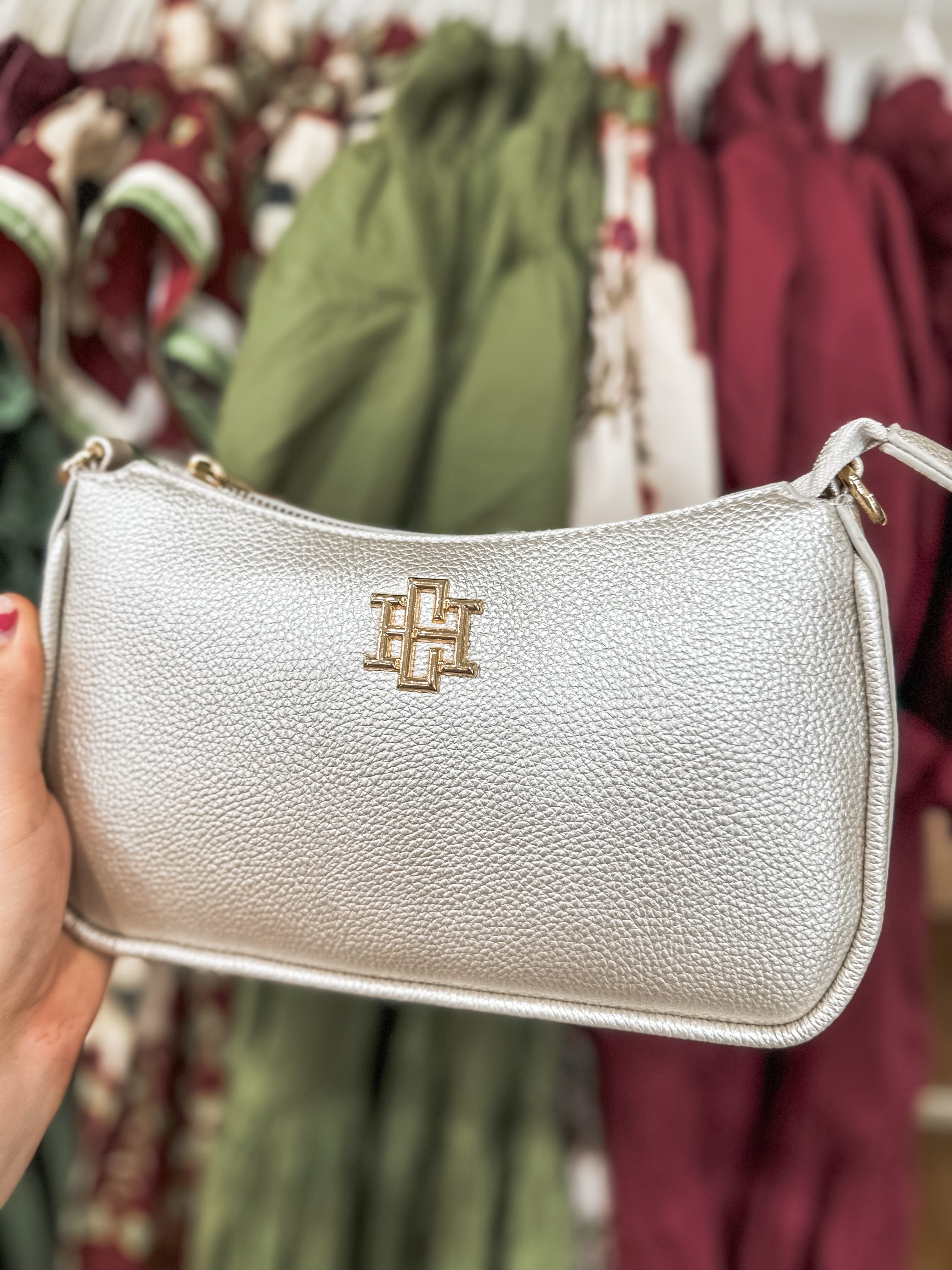 Pearl Joan Crossbody — a chic, polished staple that blends timeless elegance with everyday function. Its soft pearl finish and gold hardware add just the right amount of shine, making it perfect for holiday events, date nights, or effortless daily wear.