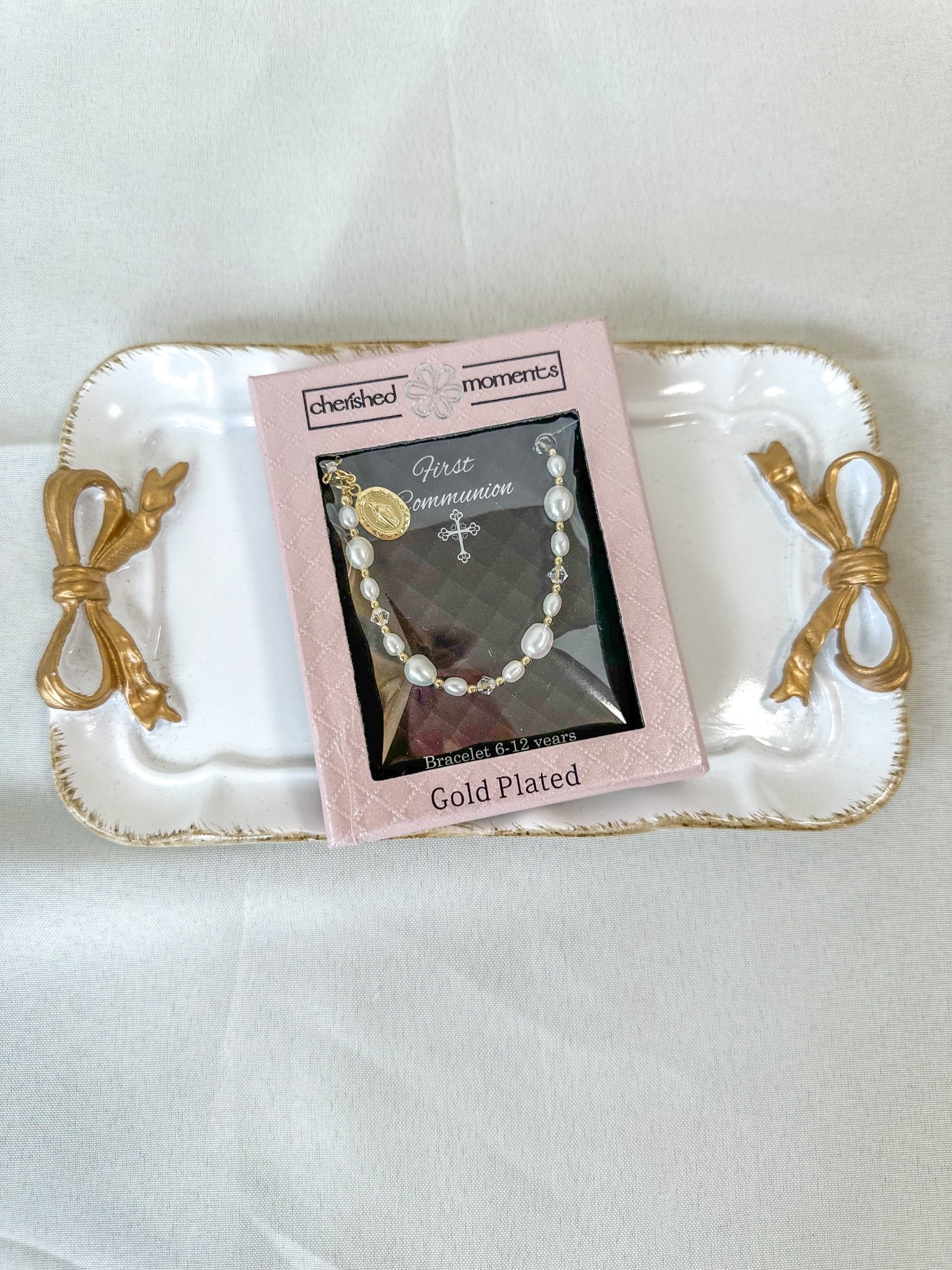 Celebrate a special milestone with this charming First Communion bracelet, featuring a 14K gold-plated Miraculous Medal. Its delicate shine adds a touch of joy and faith to any outfit, making it a perfect keepsake for your little one’s big day. A playful and meaningful accessory to treasure forever!
