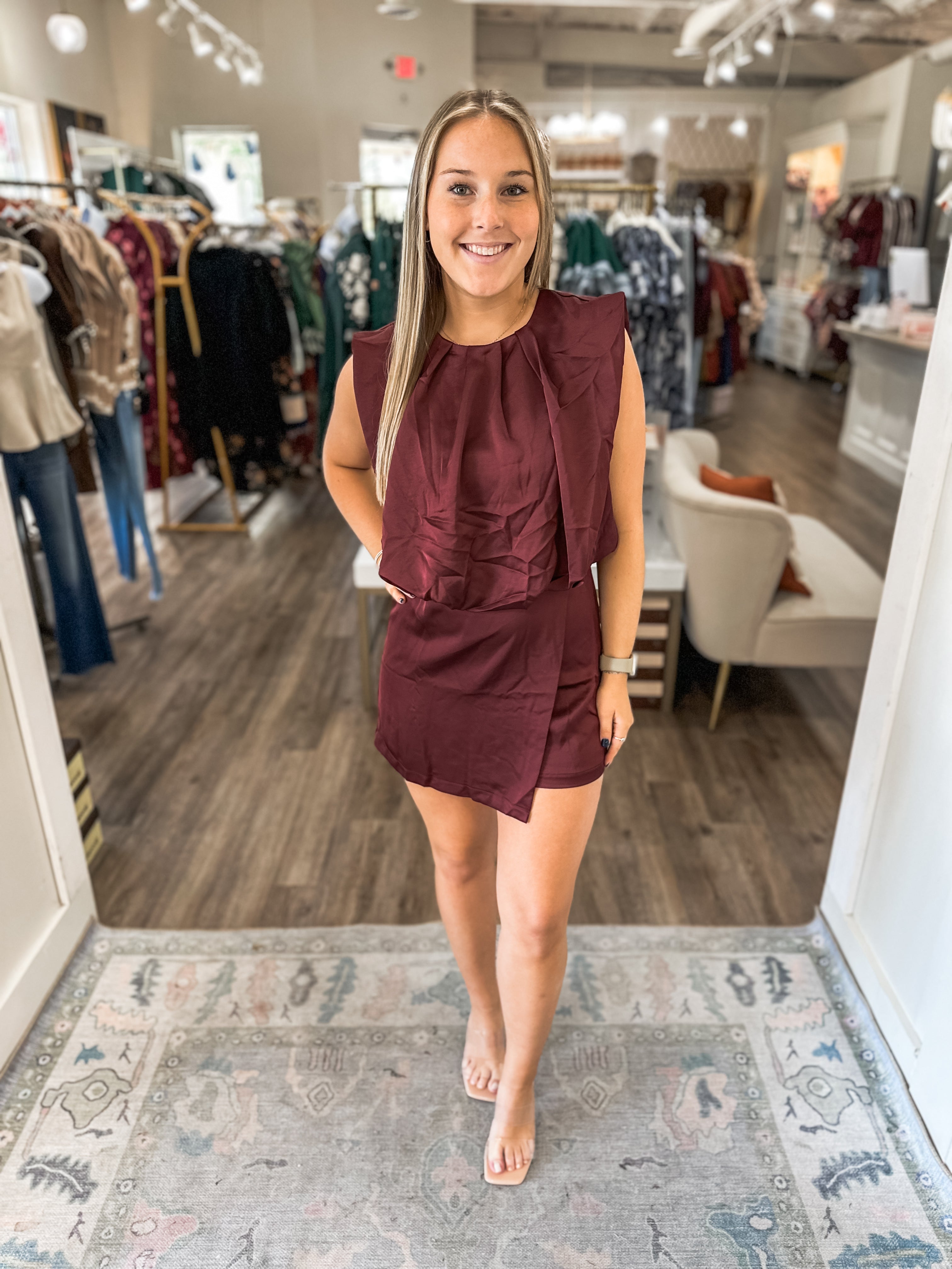 Burgundy Night Out to Remember Round Neck Romper