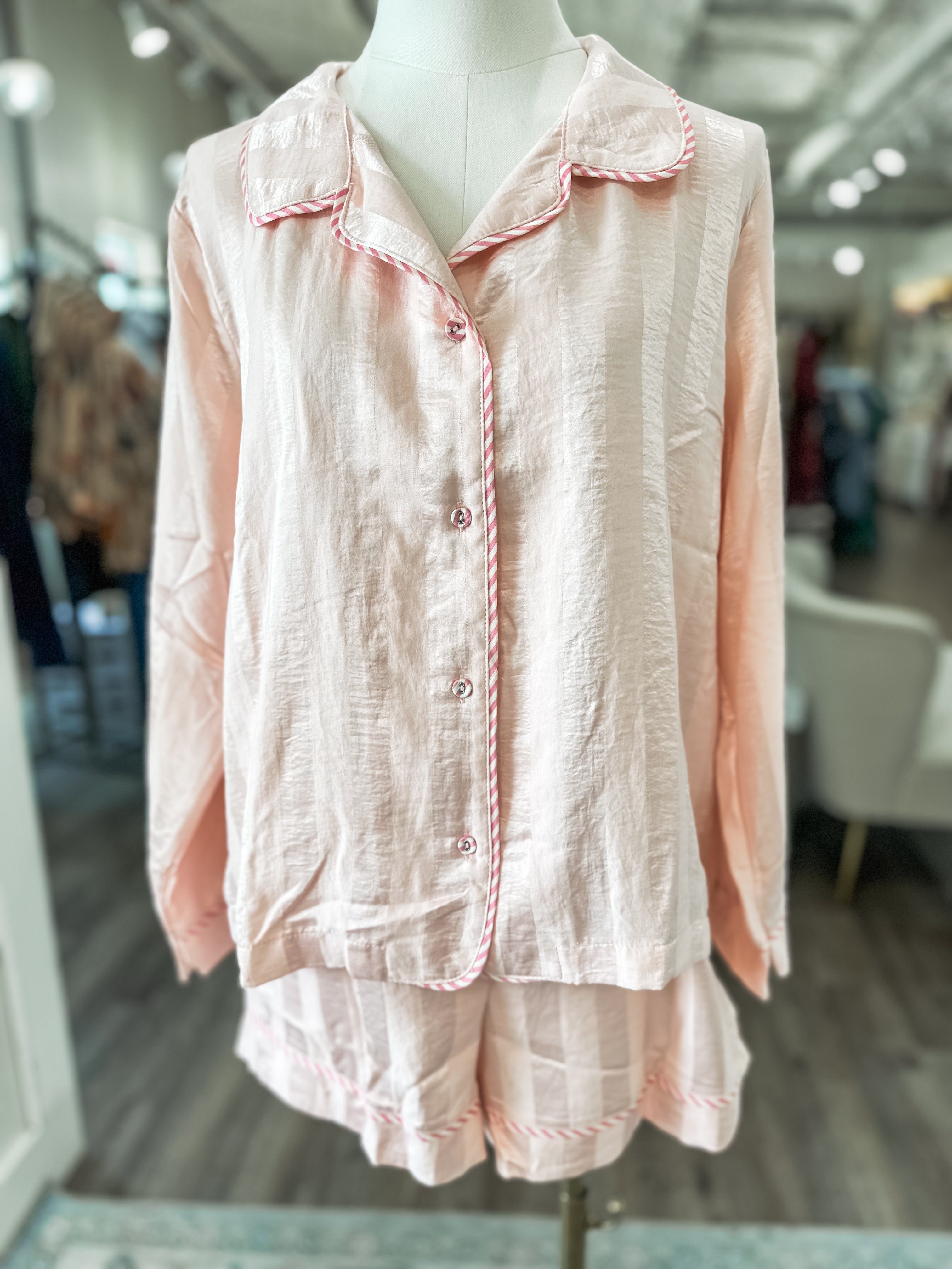 Unwind in style with this silky-smooth pajama set, perfect for cozy nights in or lounging around on lazy mornings.