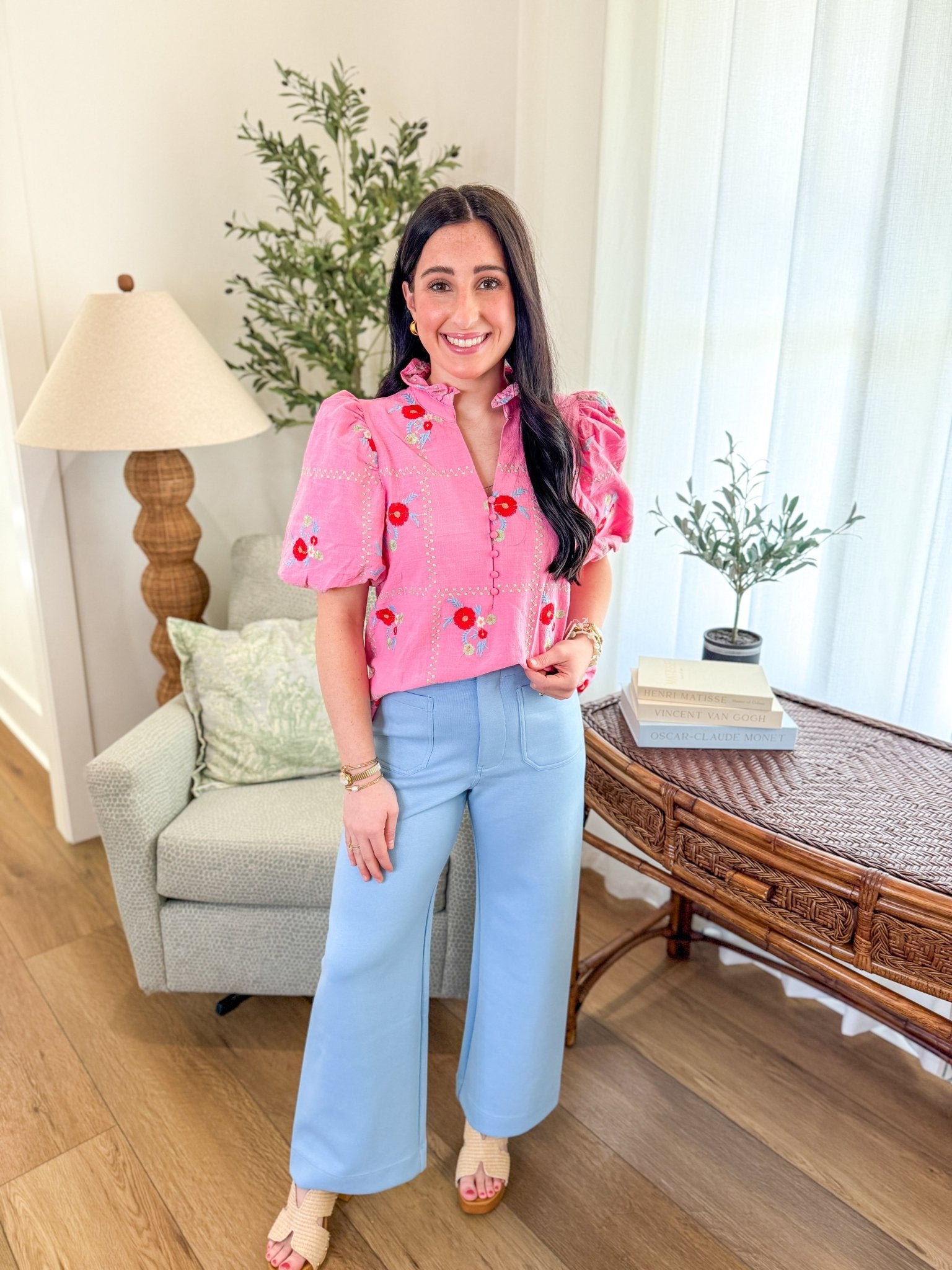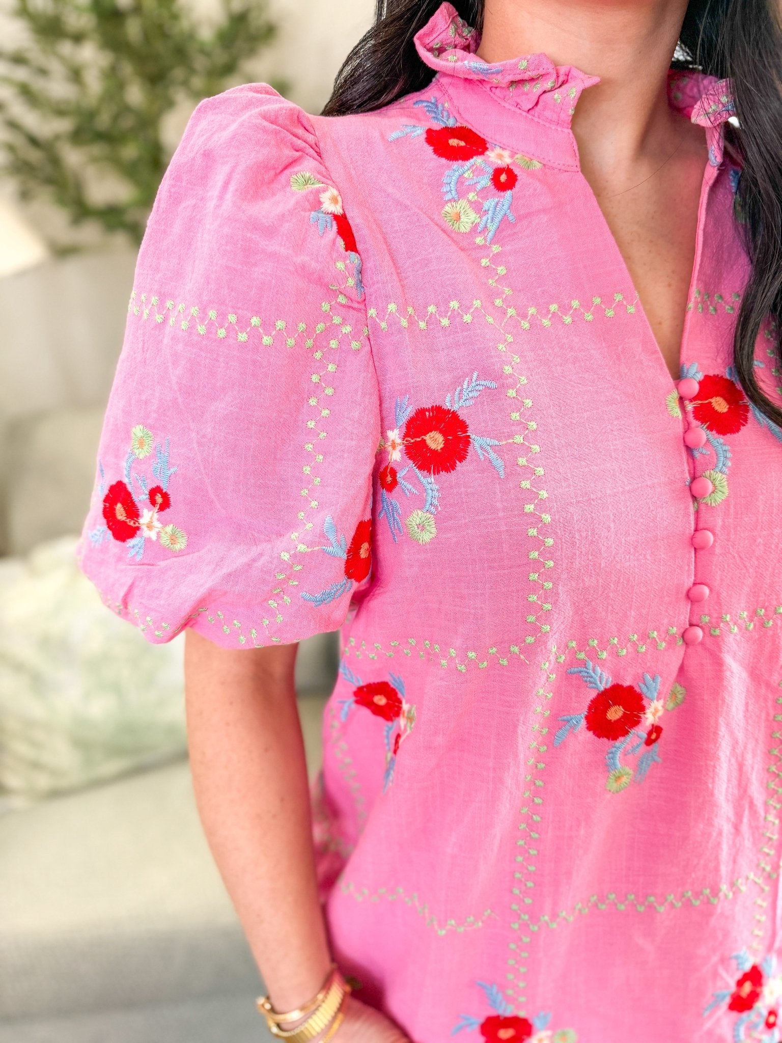 Bright, cheerful, and full of charm, The Sweet Blossom Short Sleeve Top is a statement piece that instantly lifts any outfit. Featuring vibrant floral embroidery and feminine puff sleeves, this top blends playful detail with a flattering, easy-to-wear silhouette that feels special yet effortless.