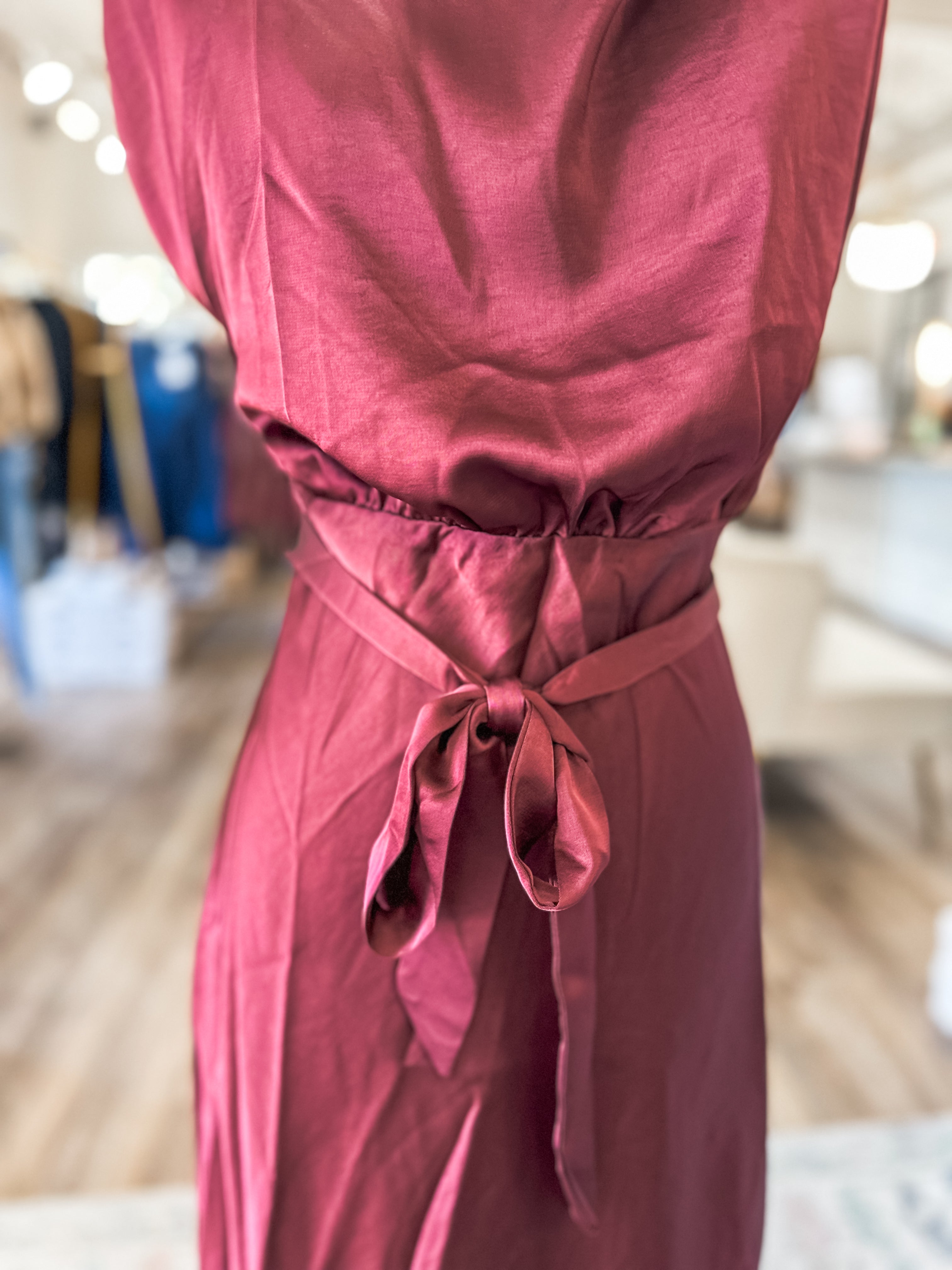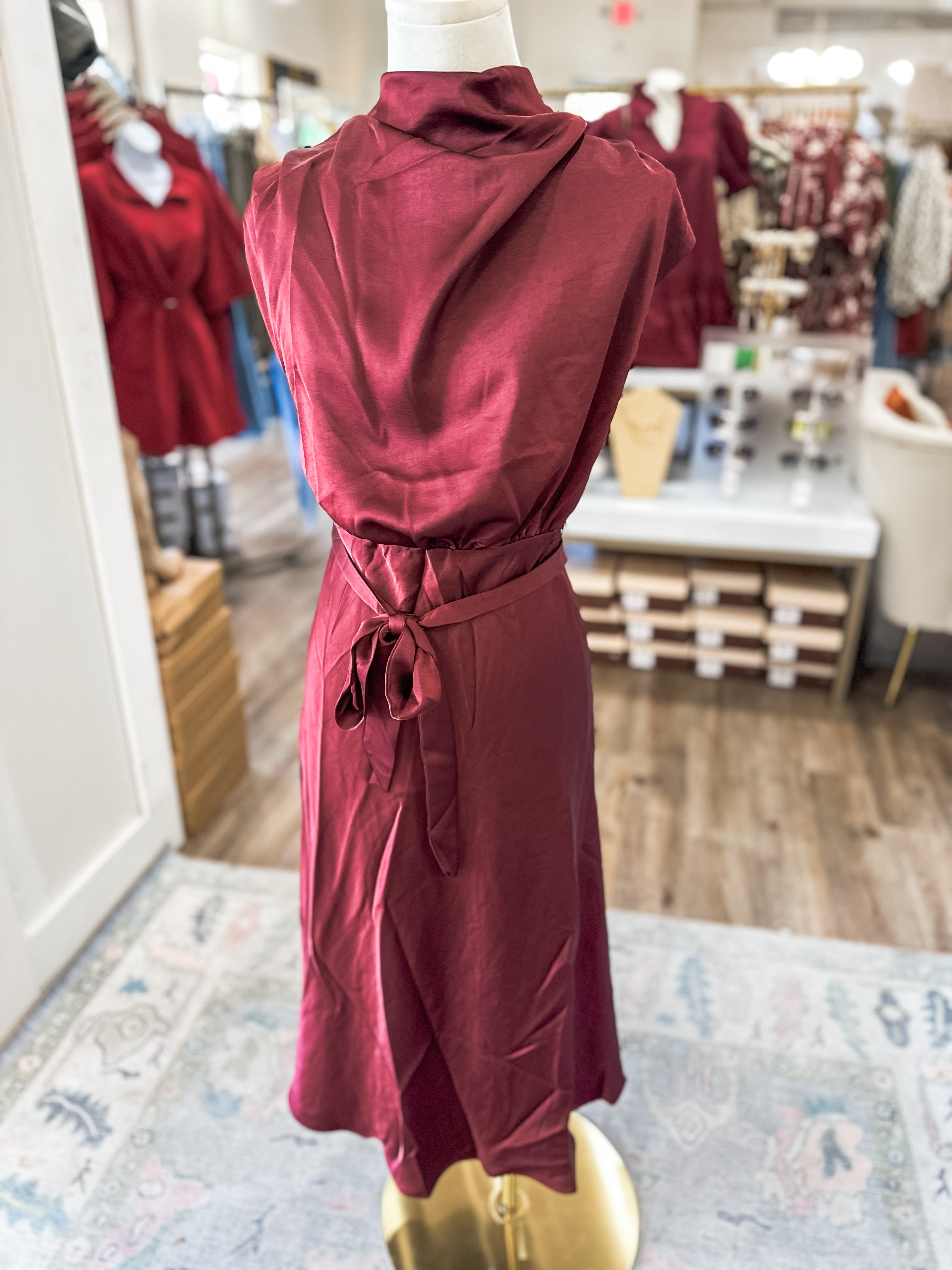 Flowy midi silhouette with adjustable tie waist for a flattering fit
