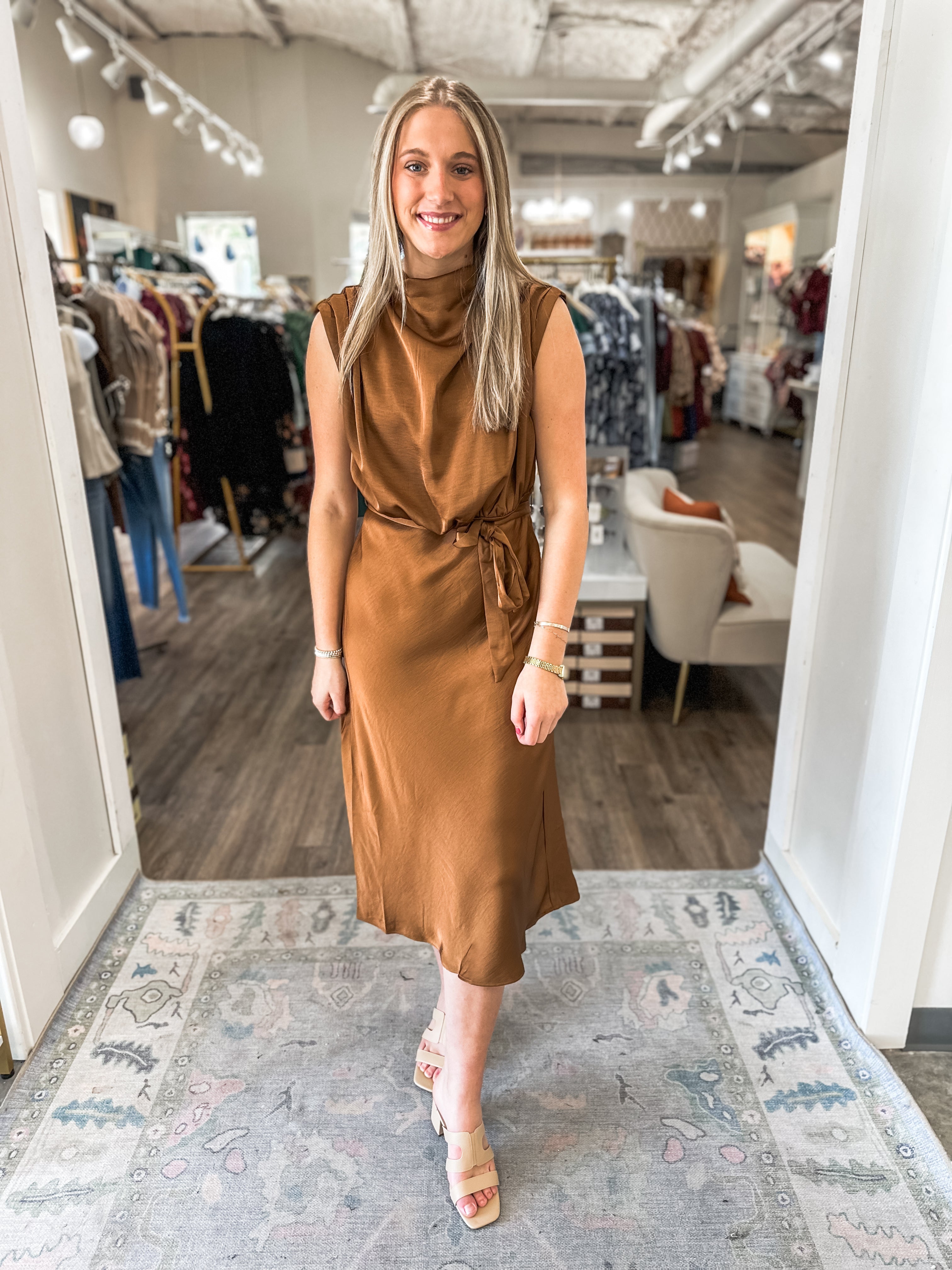 Perfect for fall weddings or a chic date night look—this rust beauty makes an unforgettable statement.