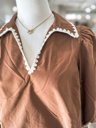 Brown Sweet Stitch Poplin Blouse