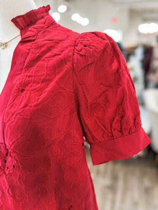 Red Everleaf Eyelet Short Sleeve V-Neck Top