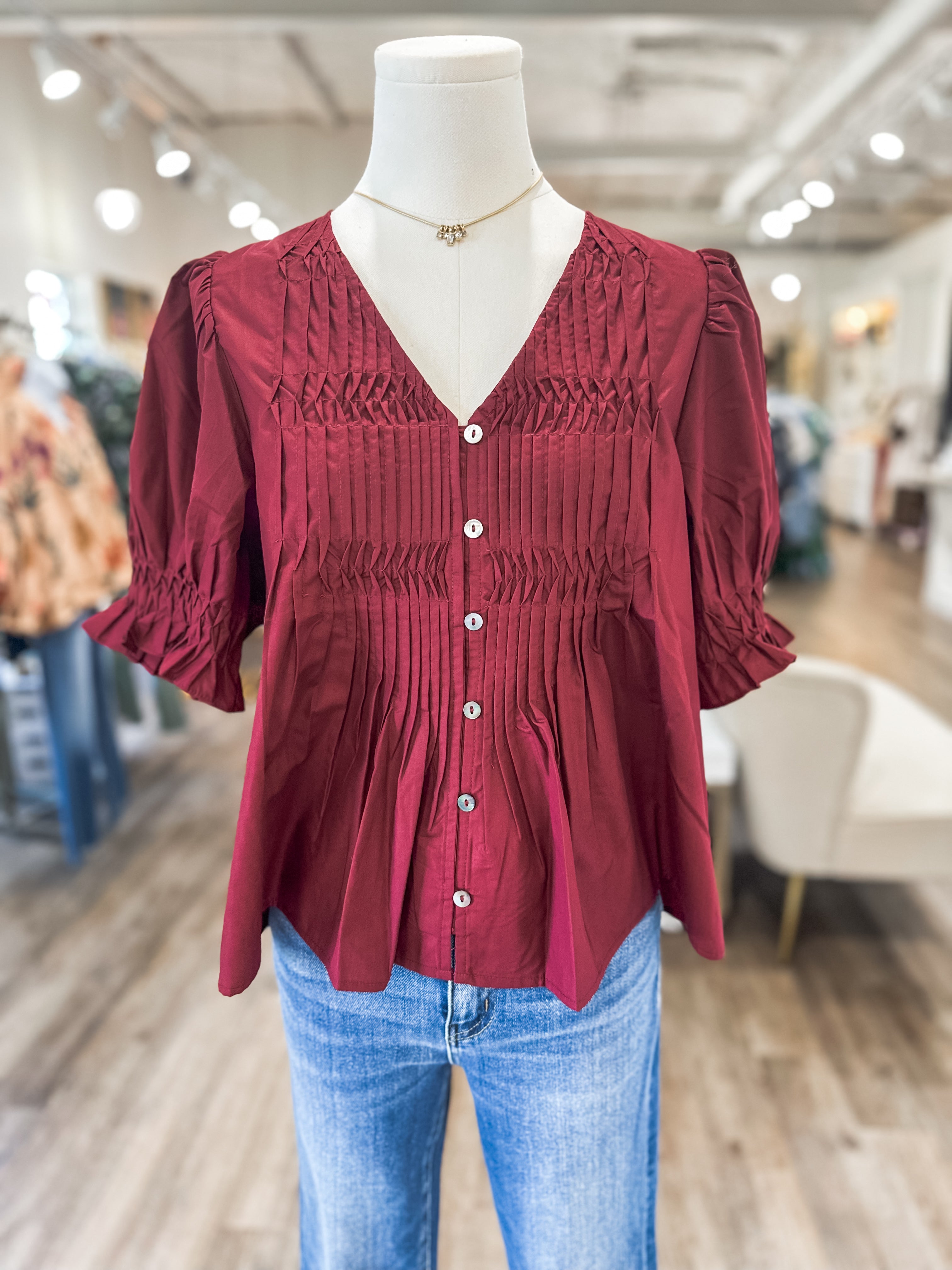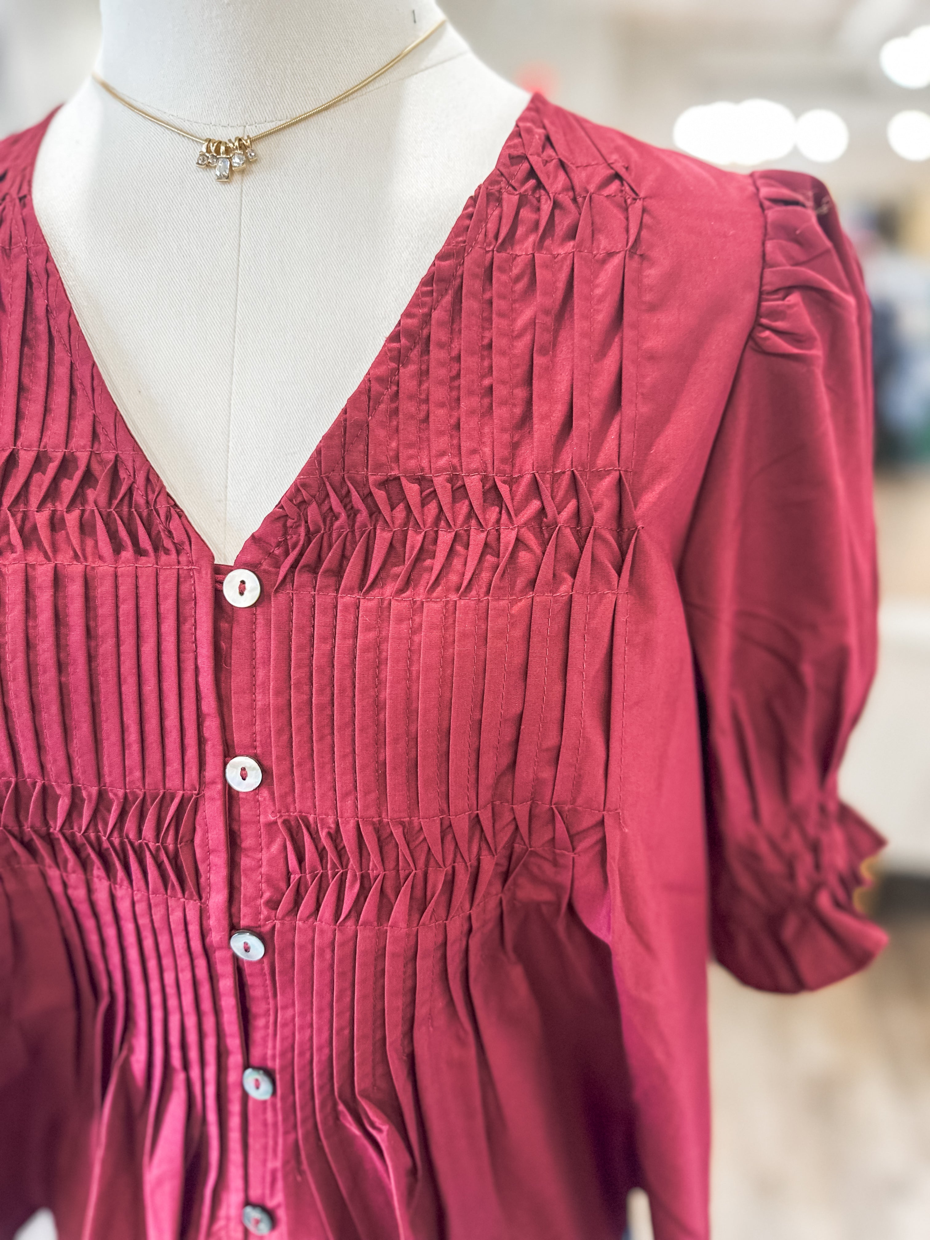 Perfect for work or play, this top brings effortless charm to any outfit. The smocked bodice offers a flattering, flexible fit while the short puff sleeves with ruffled cuffs add a touch of feminine detail. Its button-front design and flowy silhouette make it easy to style for both casual and polished looks.