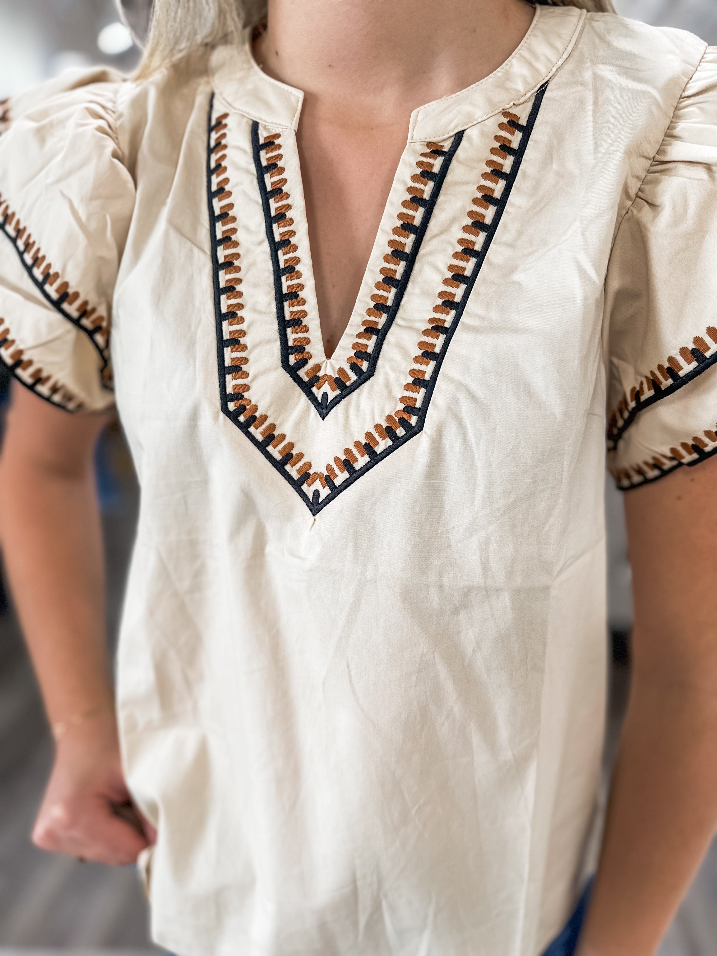 A timeless boho-inspired blouse that blends easy everyday wear with standout detail. Pair it with denim for casual days or elevate it with trousers and accessories for a chic finish.