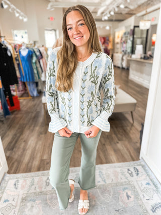 Light Blue Flowering Charm Button Up Sweater Cardigan