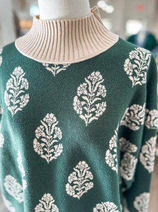 Pine Festive & Fabulous Mock Neck Cropped Sweater Top