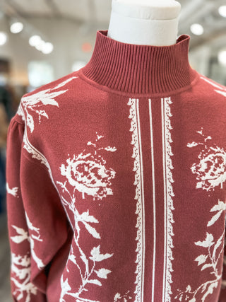 Shape Up & Shine Pattern Short Sleeve Merlot Sweater Top
