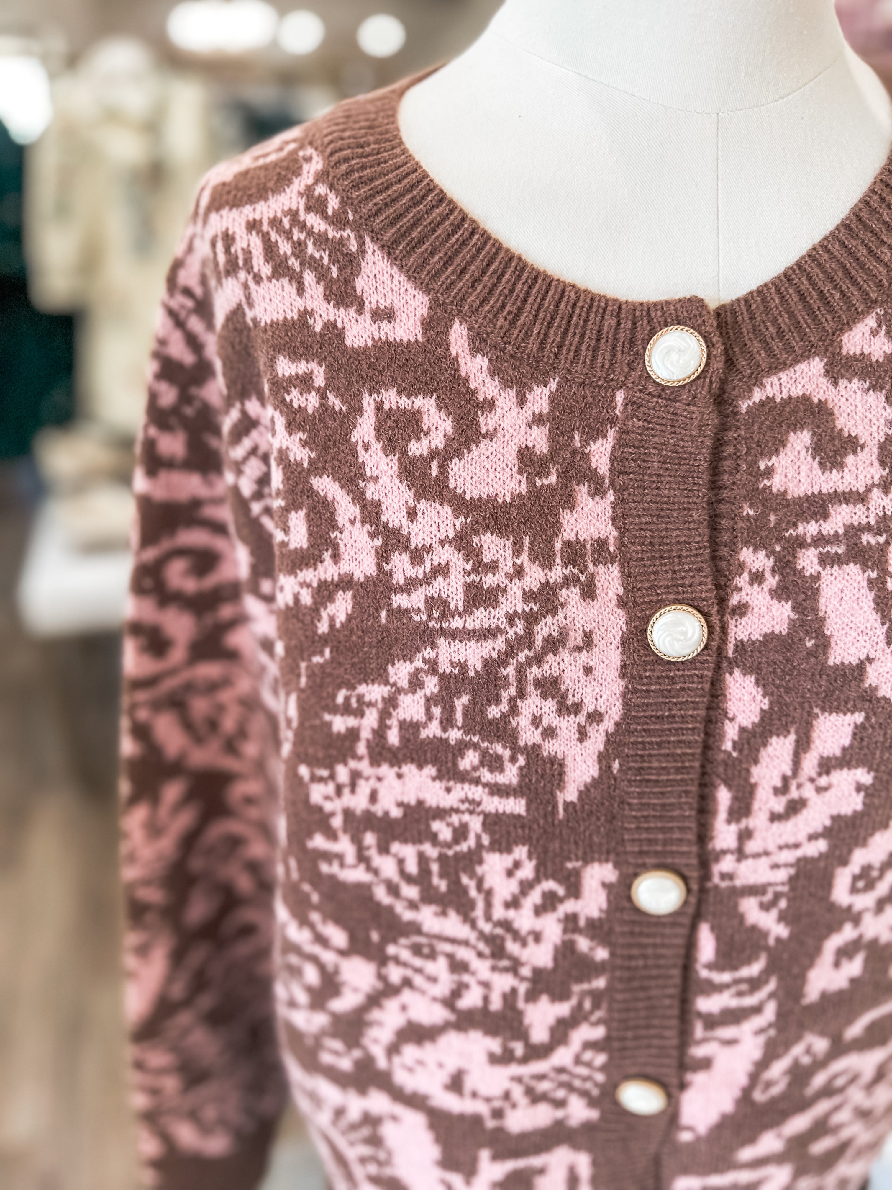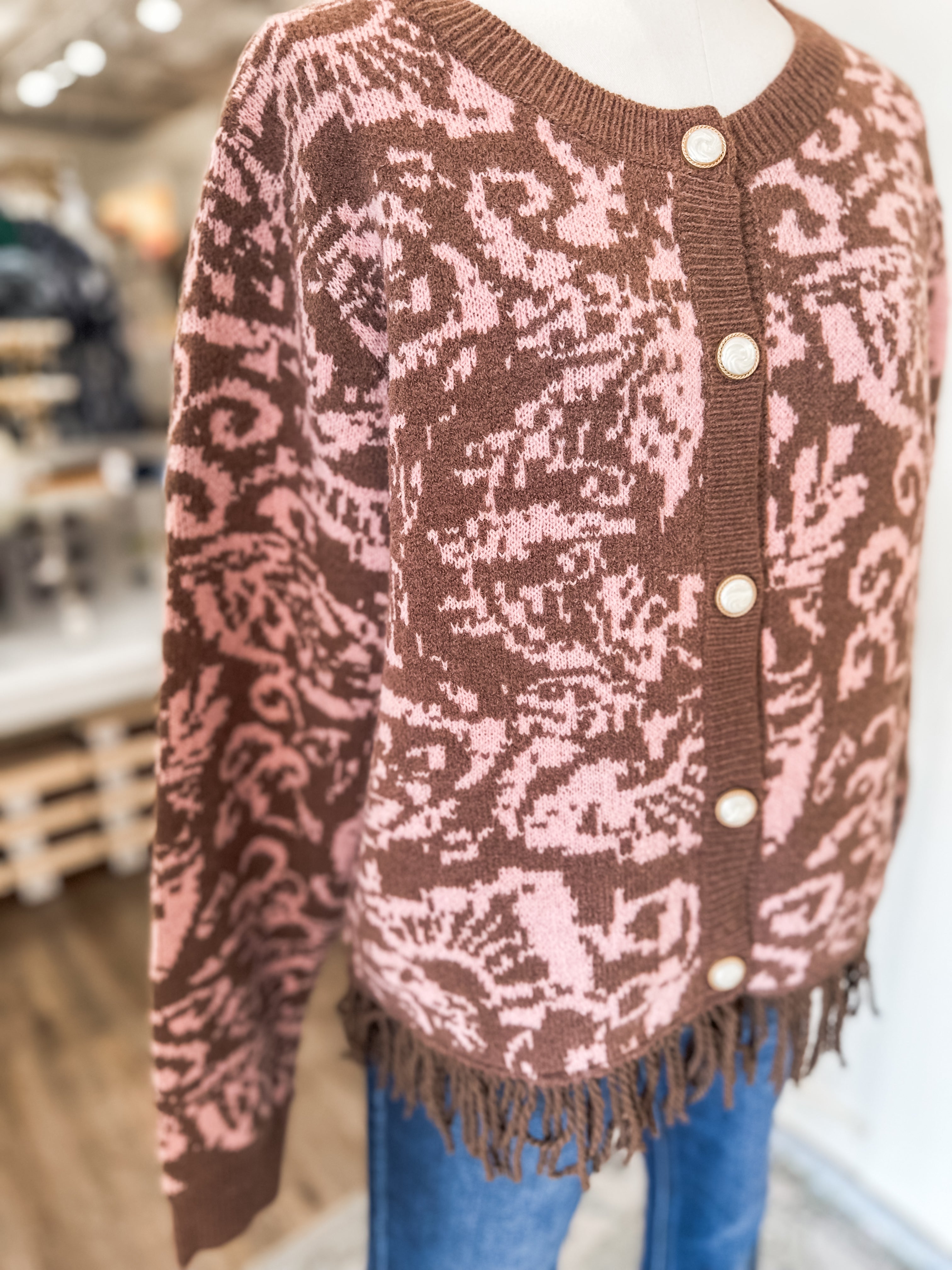Strawberry Mocha Chateau Knit Fringe Cardigan
