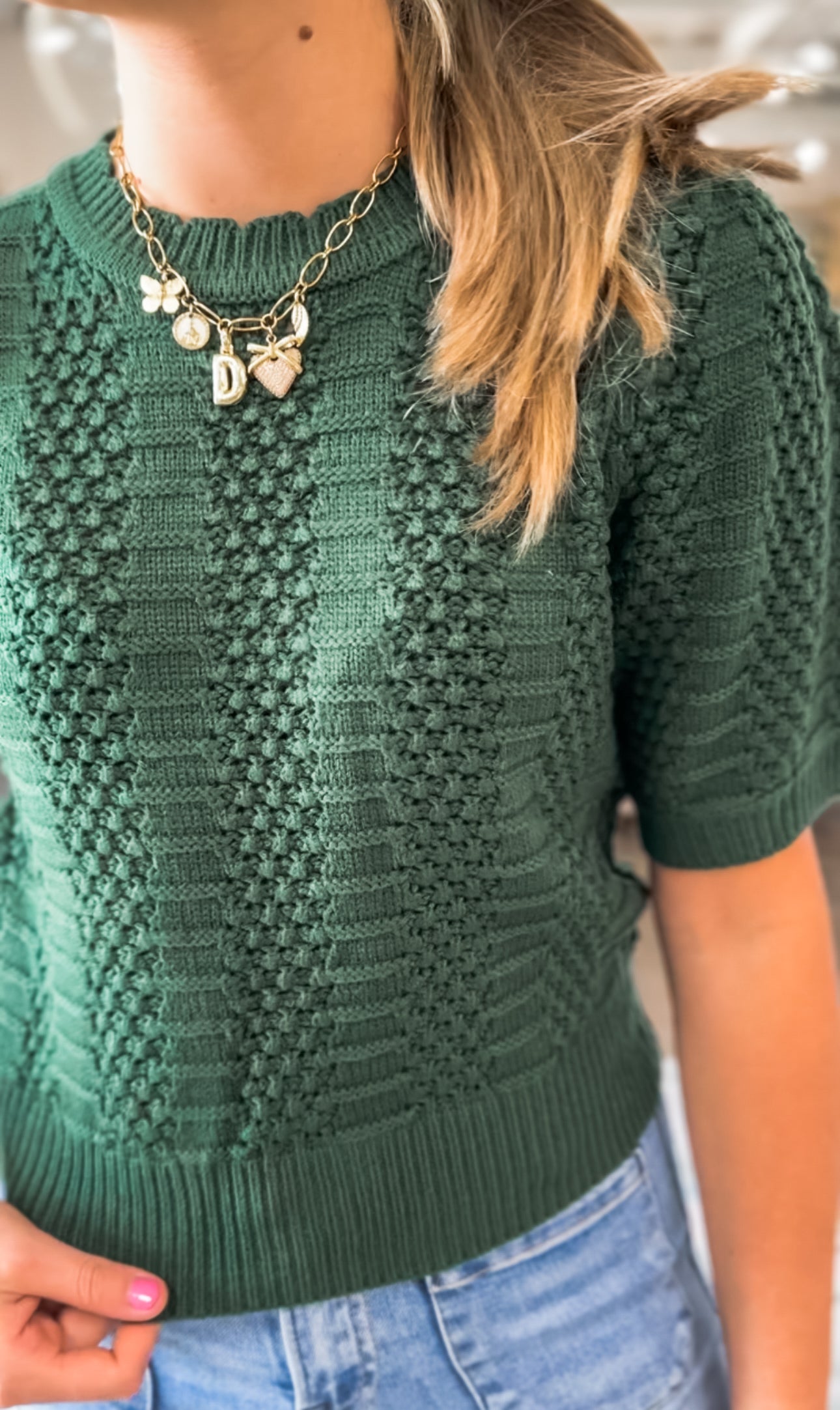 Your new go-to for cozy-chic style! The Pine Cozy Core Sweater Top blends everyday comfort with elevated texture, making it perfect for casual Fridays, coffee dates, or a weekend stroll. This short-sleeve knit features a subtle stripe pattern in a soft, lightweight yarn with a classic crew neckline and relaxed fit. Pair it with denim, skirts, or tailored pants for endless outfit possibilities.