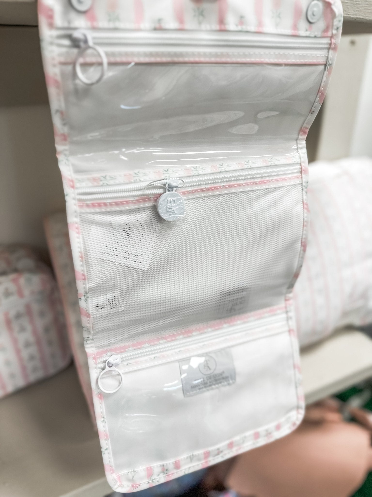 Keep your essentials neatly packed and always within reach with this darling mini rollup hanging bag. Perfect for travel or daily organization, it features a sweet pink ribbon floral print that feels timeless yet playful.