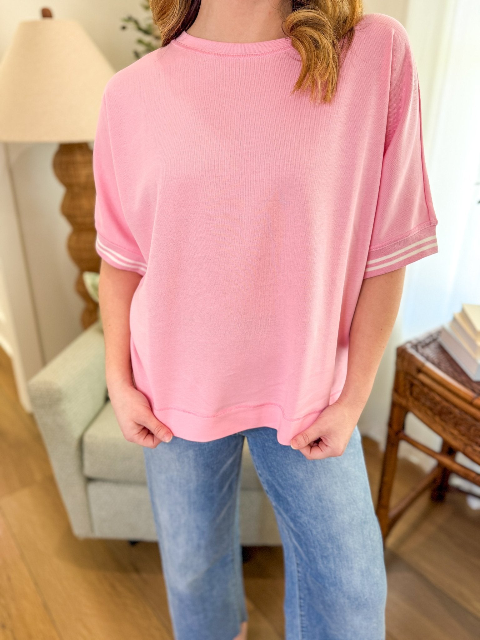 Relaxed, versatile, and made for everyday wear, the Pink Effortless Fit Round Neck Short Sleeve Top is the kind of piece you’ll grab on repeat. Designed with a comfortable loose fit and classic round neckline, this top delivers easy styling whether you’re pairing it with denim, wide leg pants, or layering it under your favorite jacket.