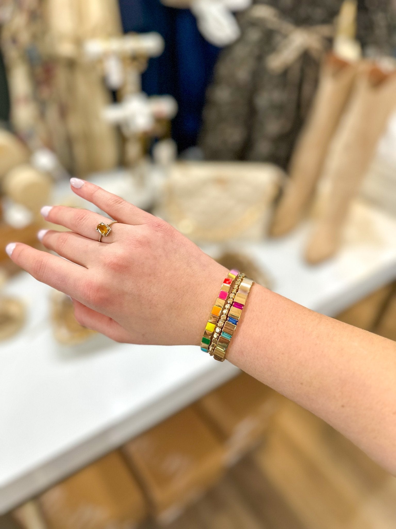 • Stretch bracelets for an easy slip-on fit