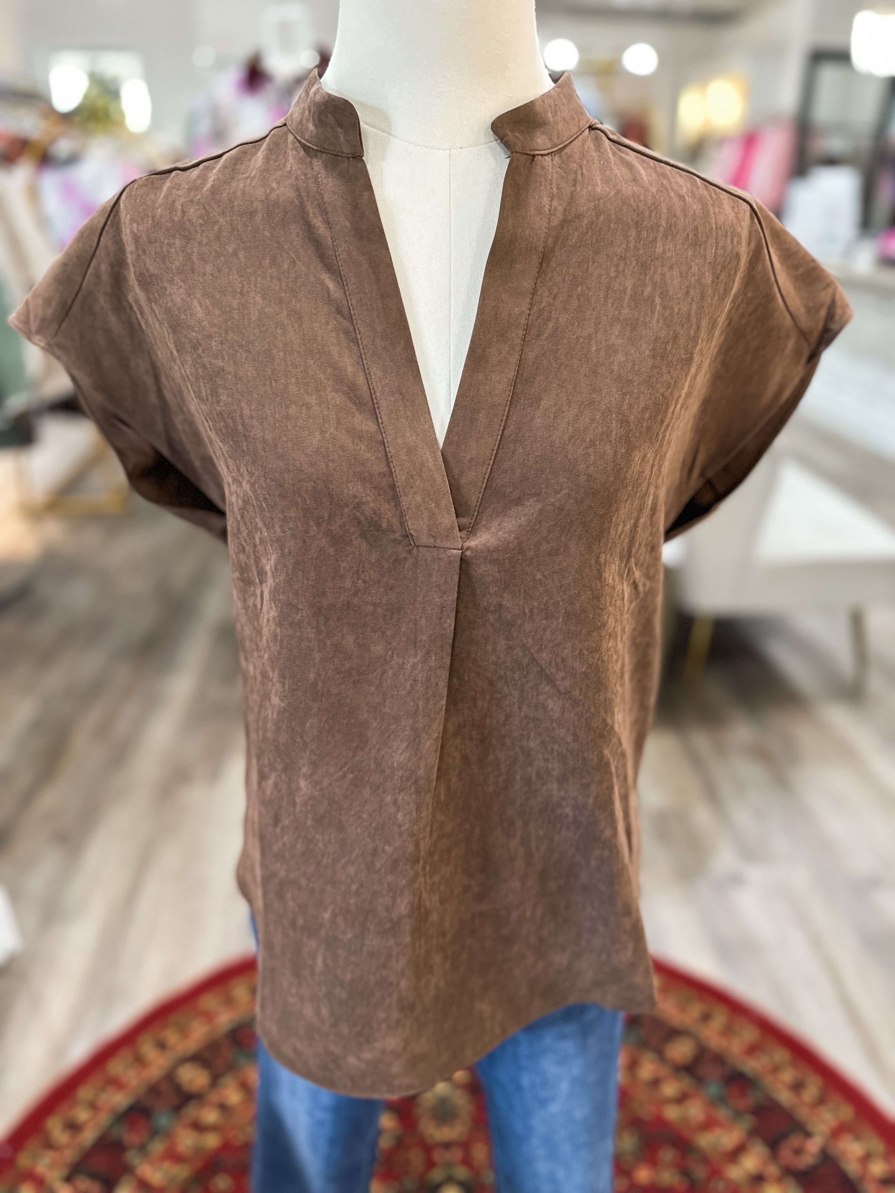 DOORBUSTER: Chocolate Soft Matte Drop Shoulder Blouse