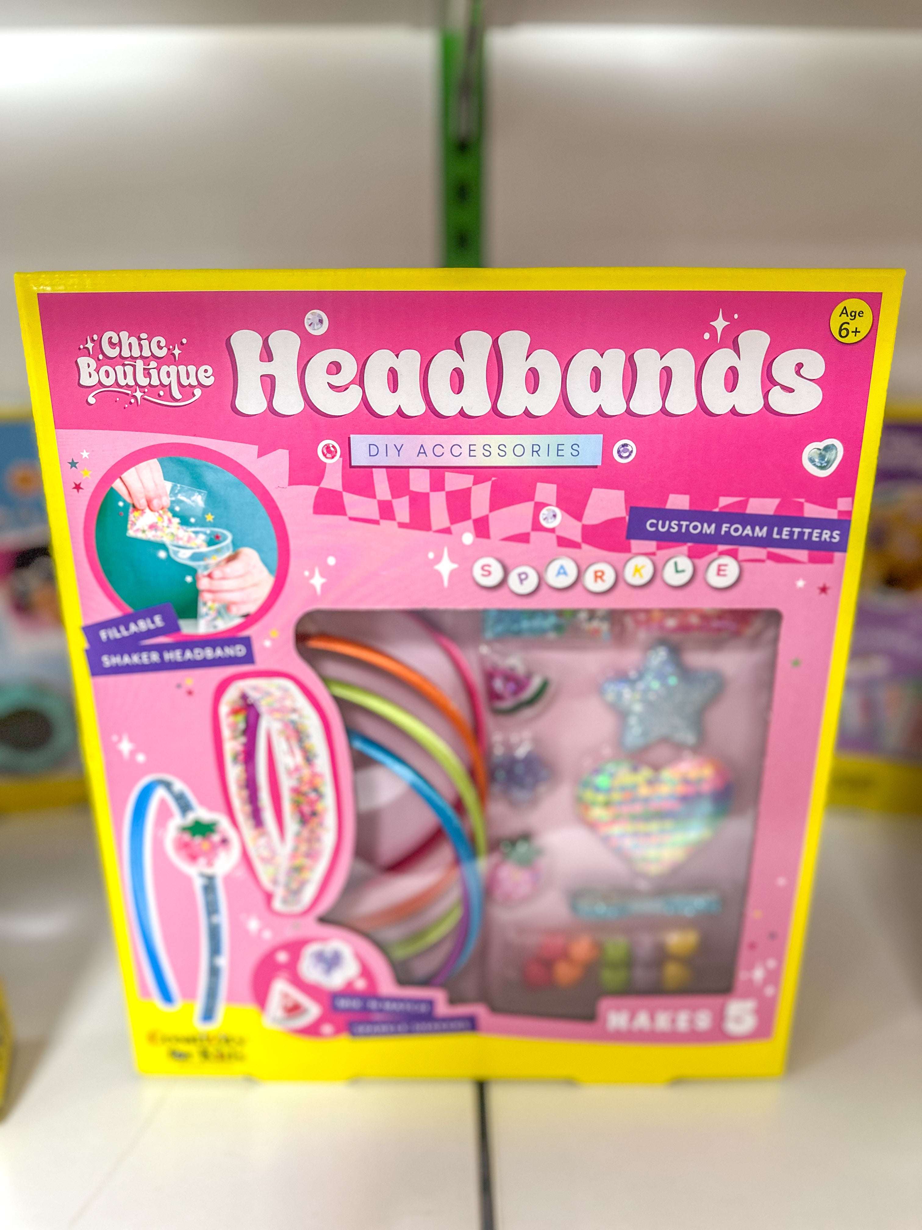 Create your own stylish accessory! These chic headbands come with stick-on gems, bows, and fun embellishments so kids can design a look that’s uniquely theirs. Perfect for creative play, birthday gifts, or stocking stuffers. Great for ages 5+!