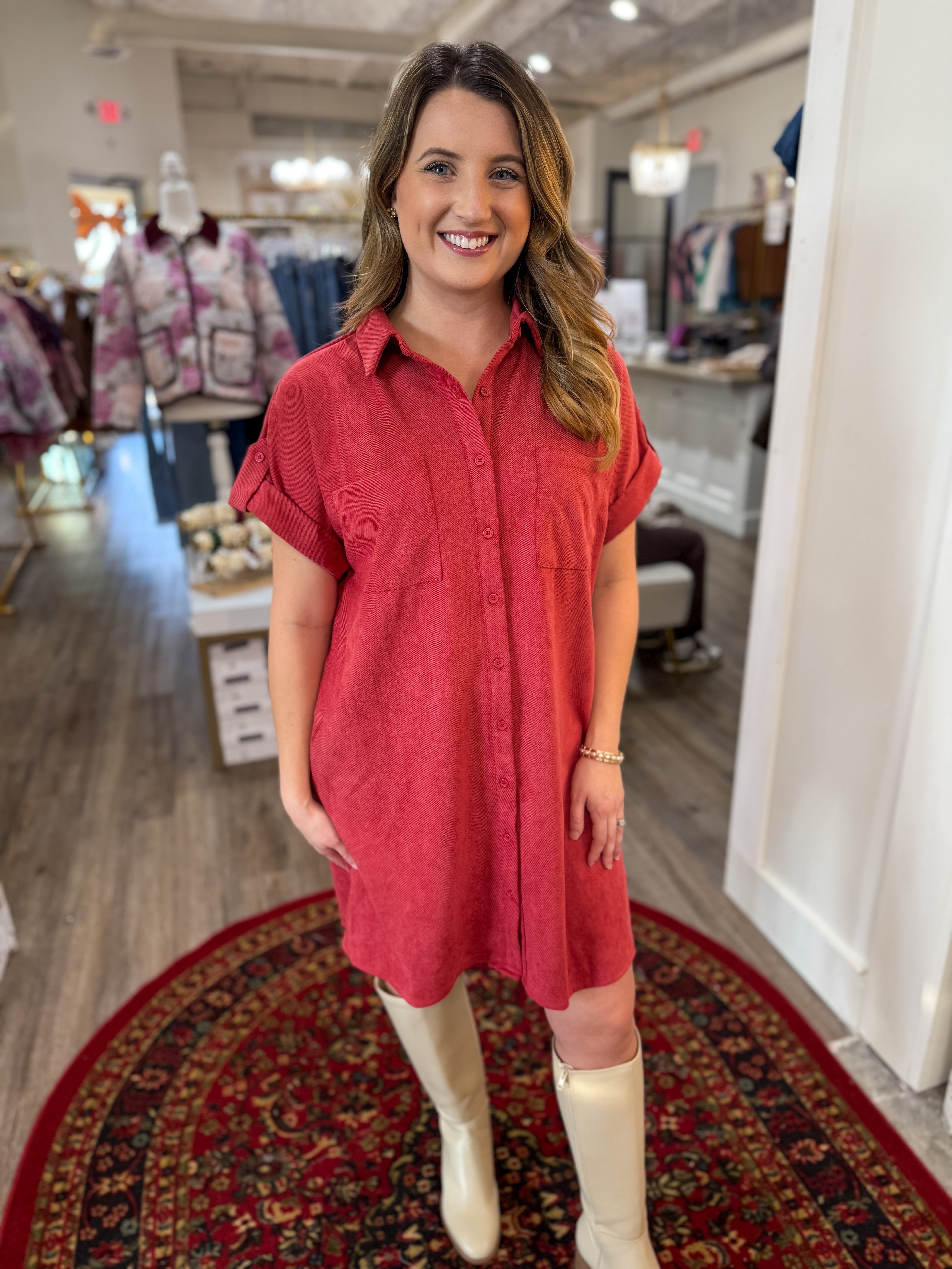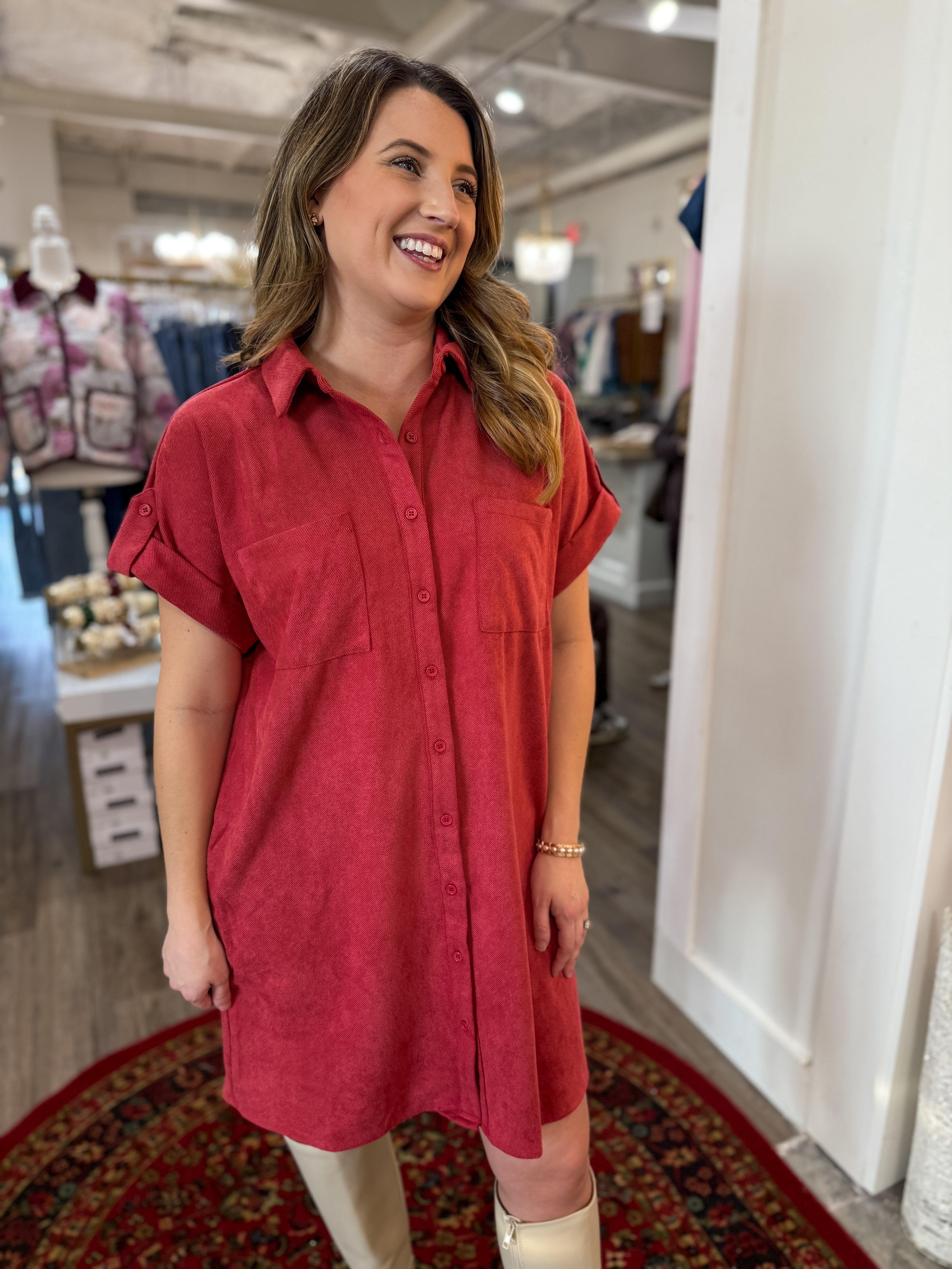 An easy, elevated shirt dress that blends cozy texture with a timeless silhouette. Perfect for fall days, casual dinners, or styled with boots for an effortlessly chic seasonal look.