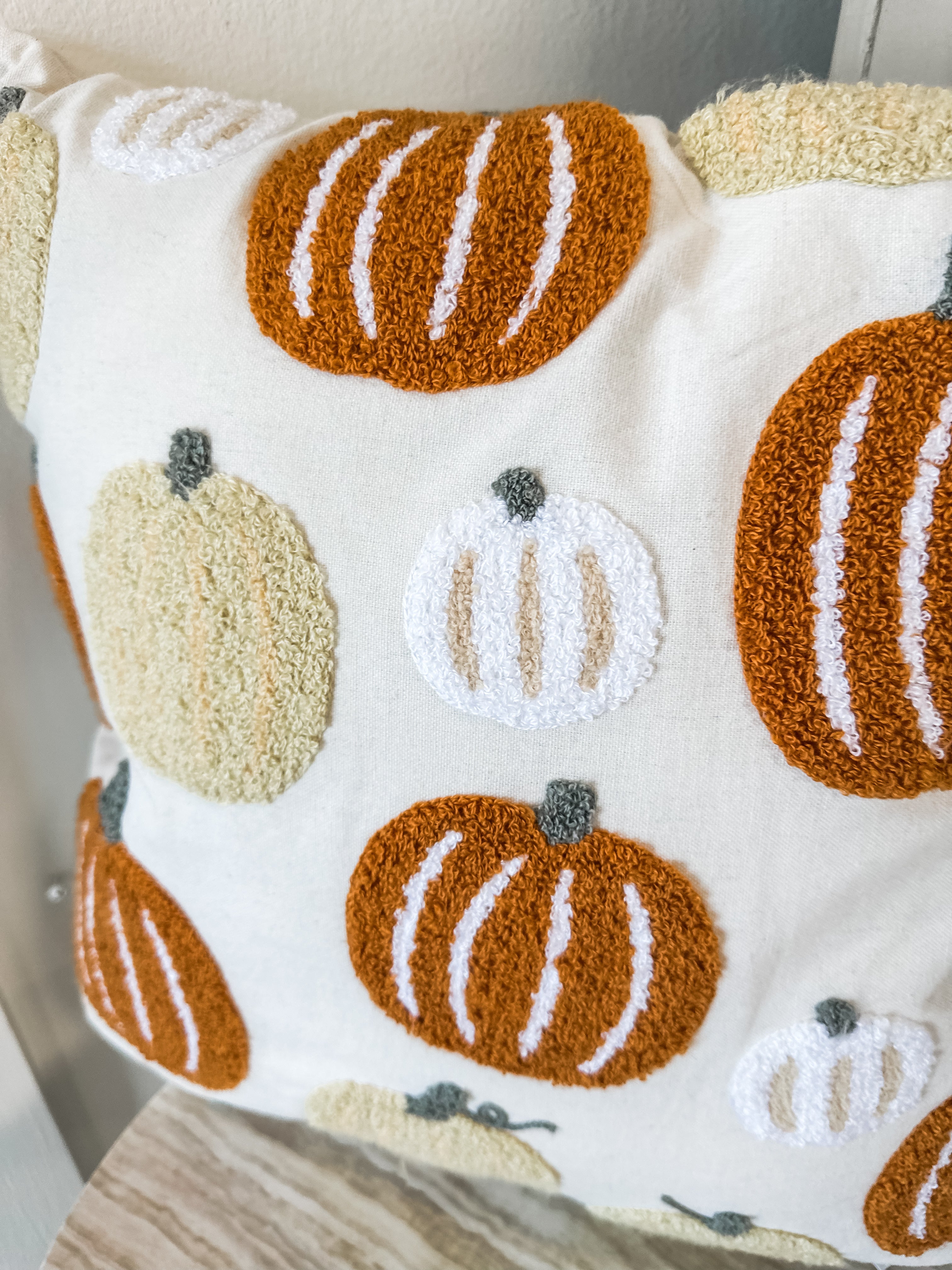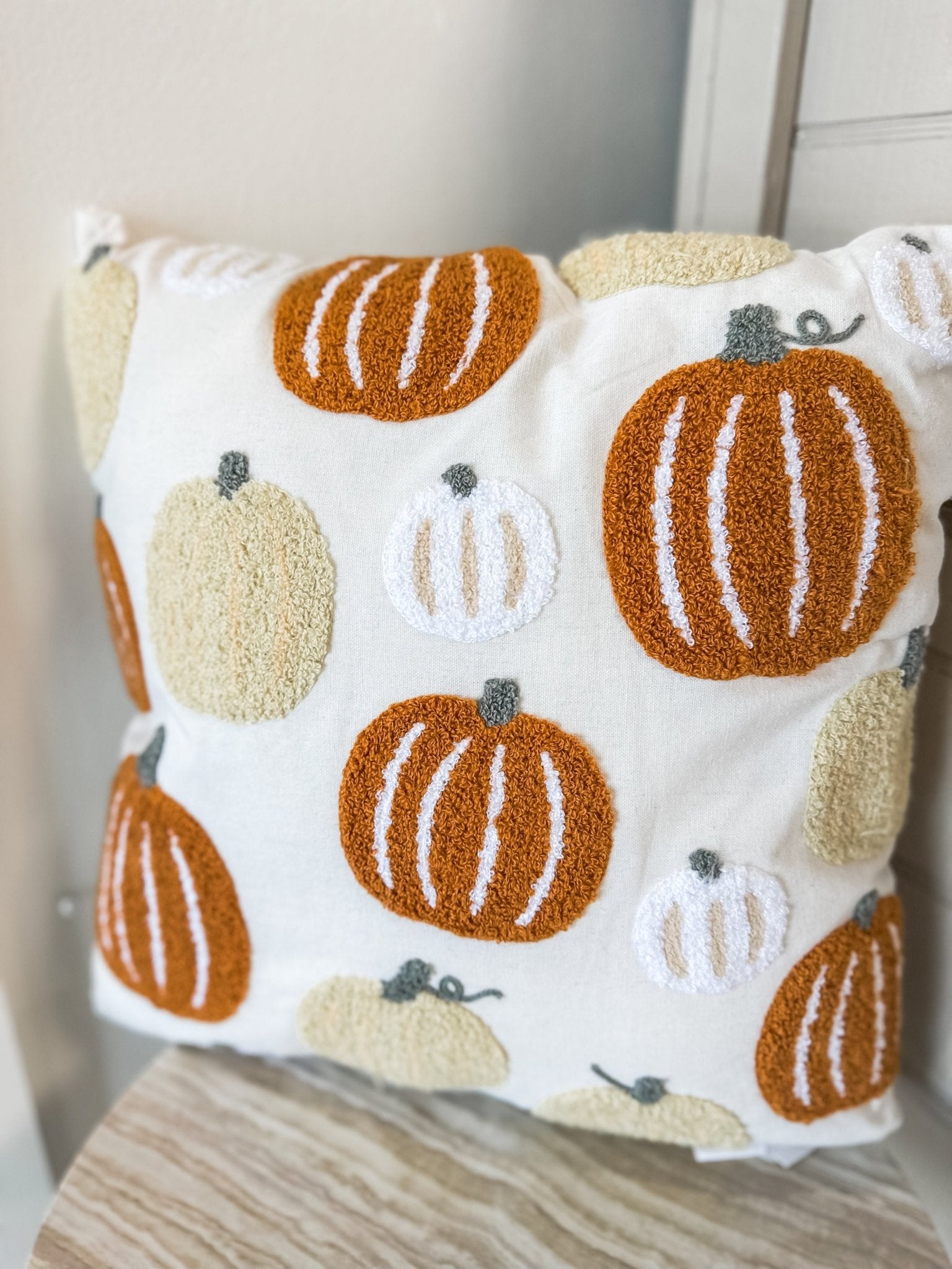 Add a cozy autumn touch to your space with the Pumpkin Patch Embroidered Pillow. Featuring rich orange embroidery on a crisp white background, this decorative accent brings all the fall charm — perfect for your sofa, entry bench, or guest bedroom.